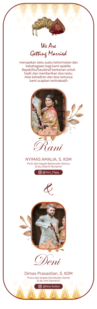 Merupakan suatu kehormatan dan kebahagiaan bagi kami sekeluarga apabila Bapak/Ibu/Saudara/i berkenan hadir untuk memberikan doa restu kepada kedua mempelai. Atas kehadiran serta doa restu, kami ucapkan terima kasih.
